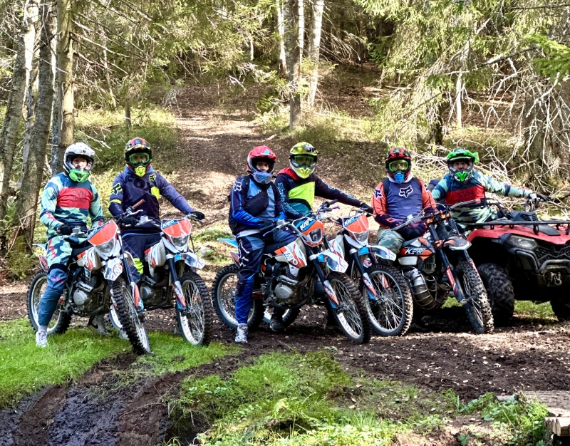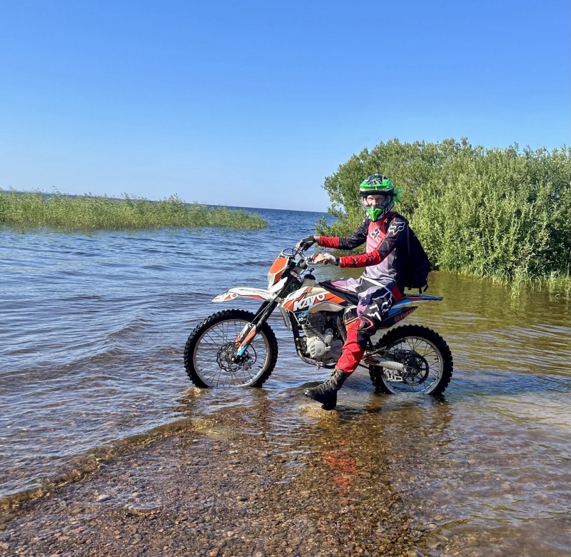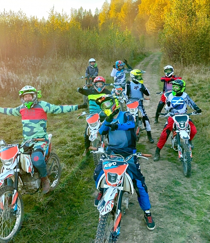 - комплект защитной экипировки (наколенники, мотоштаны, панцырь, джерси, подшлемник, шлем, защитные очки);